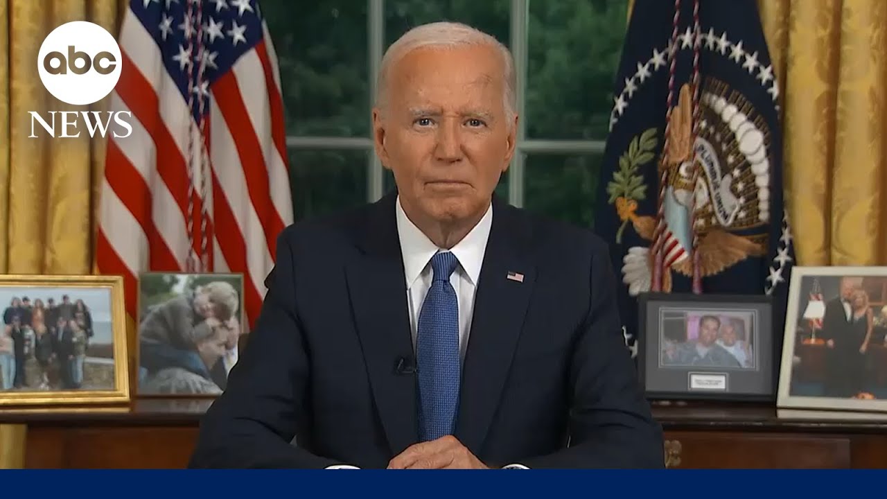 «Я считаю, что мои достижения на посту президента, мое лидерство в мире, мое видение будущего Америки — все это заслуживает второго срока. Но ничто, ничто не может помешать спасению нашей демократии. Это касается и личных амбиций. Поэтому я решил, что лучший путь вперед — передать эстафету новому поколению. Это лучший способ объединить нашу нацию».
