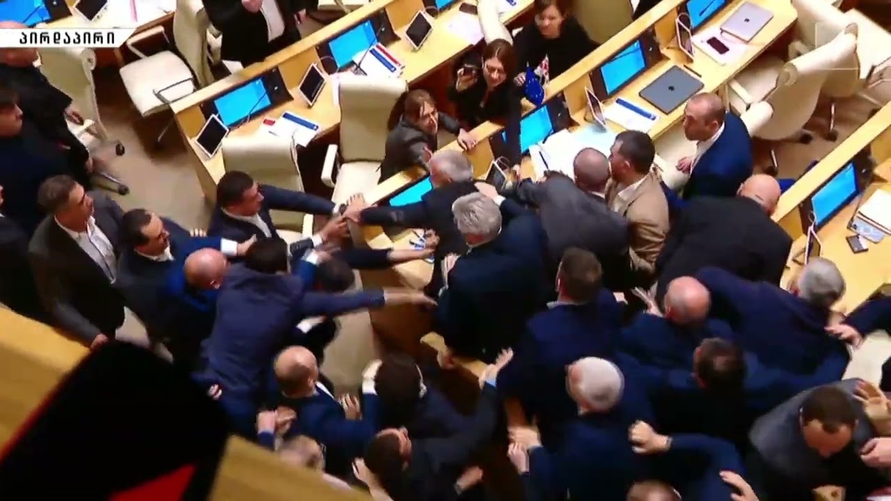 У парламенті Грузії, де розглядають у фінальному читанні скандальний проросійський законопроект про "іноагентів", сталася масова бійка між депутатами.